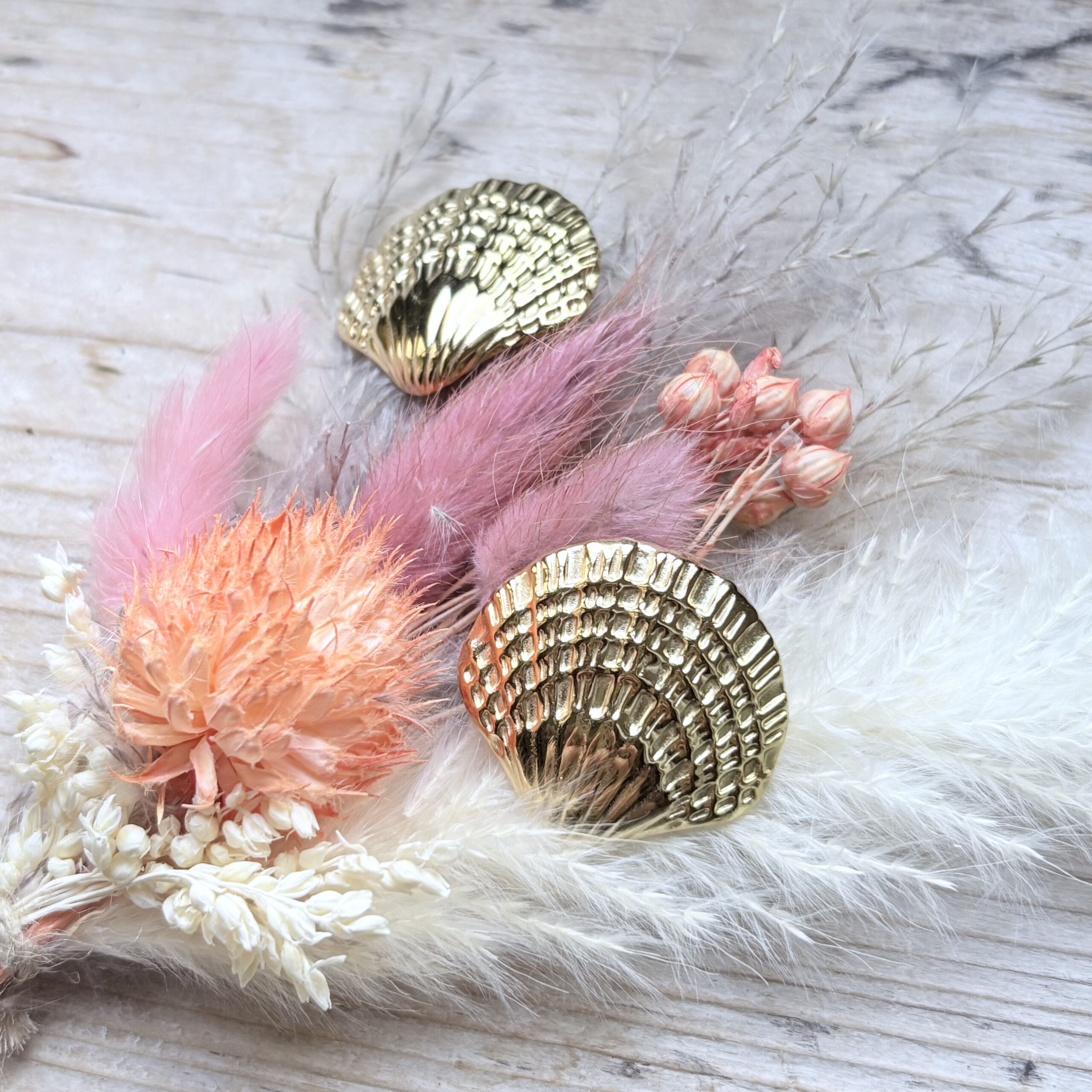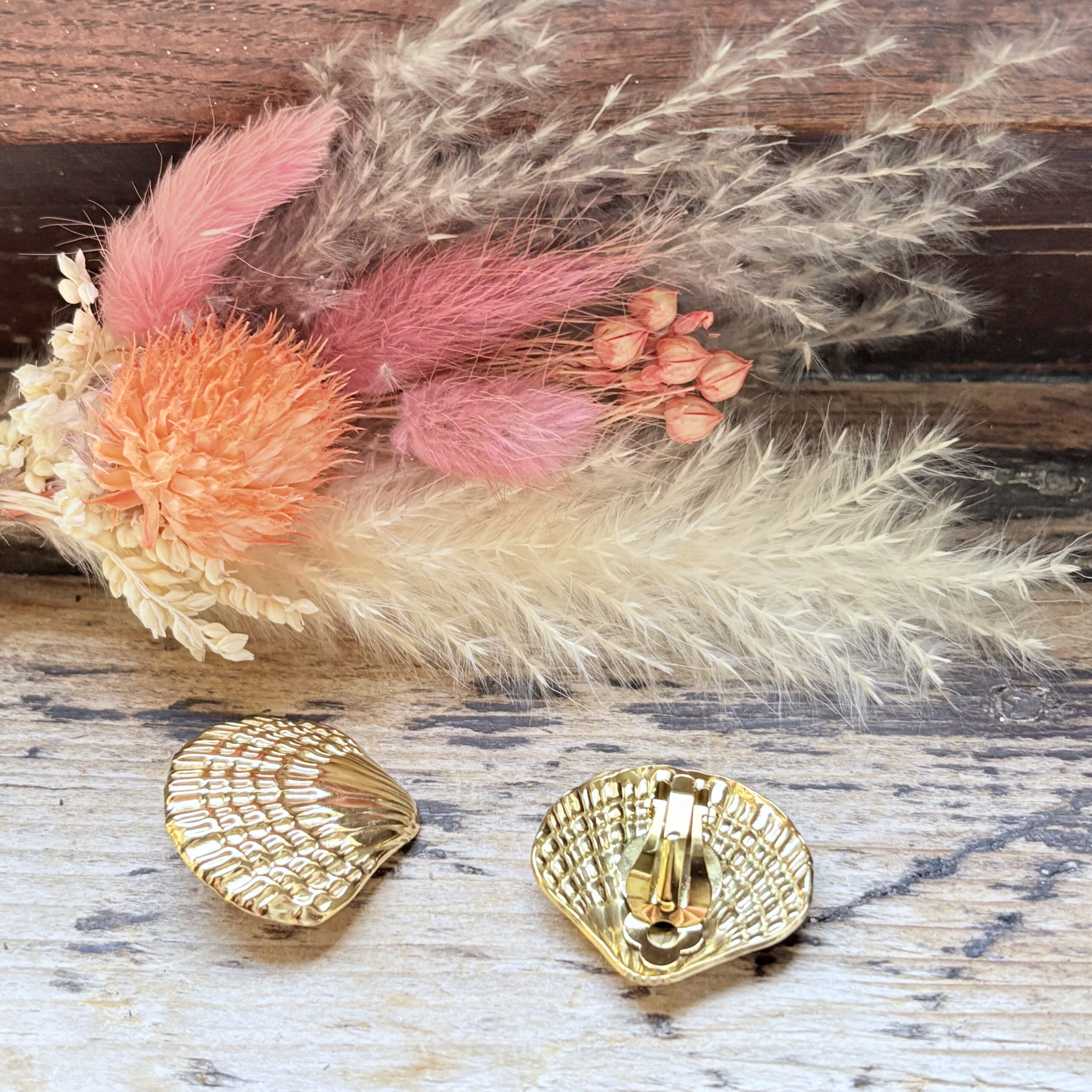 Éclat doré et allure marine. Les boucles d’oreilles clips Odette reprennent la forme délicate d’un coquillage, pour un style à la fois vintage et raffiné. Parfaites pour illuminer une tenue, même sans oreilles percées.